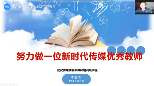开班典礼后,特邀校外专家李友清教授为新教职工做了《努力做一位新时代传媒优秀老师》的主题报告,李友清教授站在时代发展的高度,结合国家区域经济文化发展形势和高等教育质量革命的态势,高屋建瓴地从宏观理念形势到中观思路举措到微观职责方法,层层推进、满怀激情地从“为什么要当教师”、“新时代高校教师的使命和担当”、“传媒大学教师的任务和责任”三个方面讲述了教师的内涵、使命及担当,并结合传媒业发展态势,提出了传媒大学教师肩负的五大任务与责任,号召新教师们要努力提高专业素养,做“四有”好老师,践行“四为服务”。讲座最后,李教授殷切希望大家把个人的理想追求融入国家和民族的事业中,勇做走在时代前列的奋进者、开拓者!希望大家珍惜韶华,不负众望,脚踏实地,把远大抱负落实到武汉传媒学院的建设发展中,努力做一位新时代传媒优秀教师,为把武汉传媒学院建设成全国特色鲜明,新文科示范院校贡献力量!